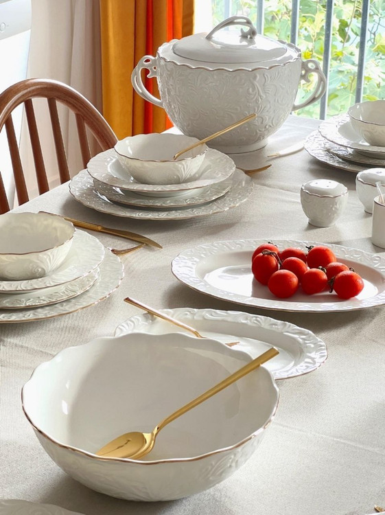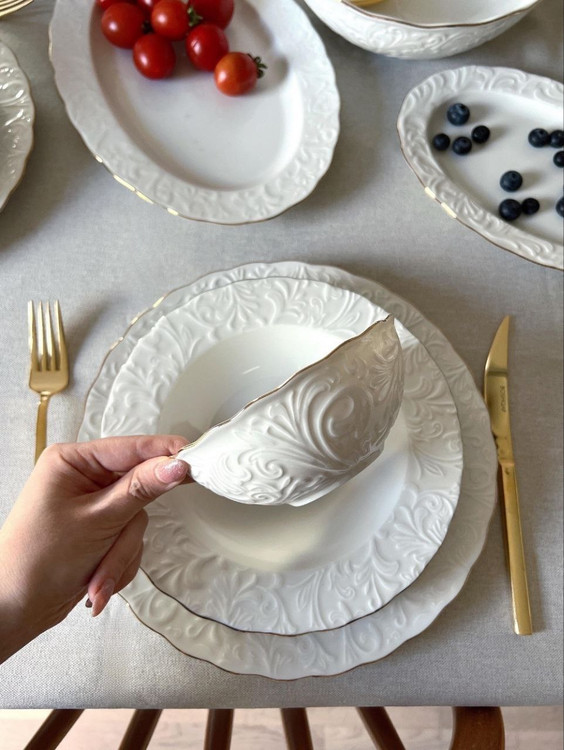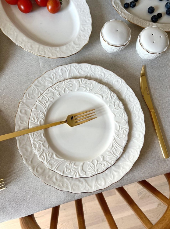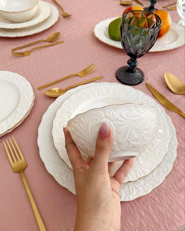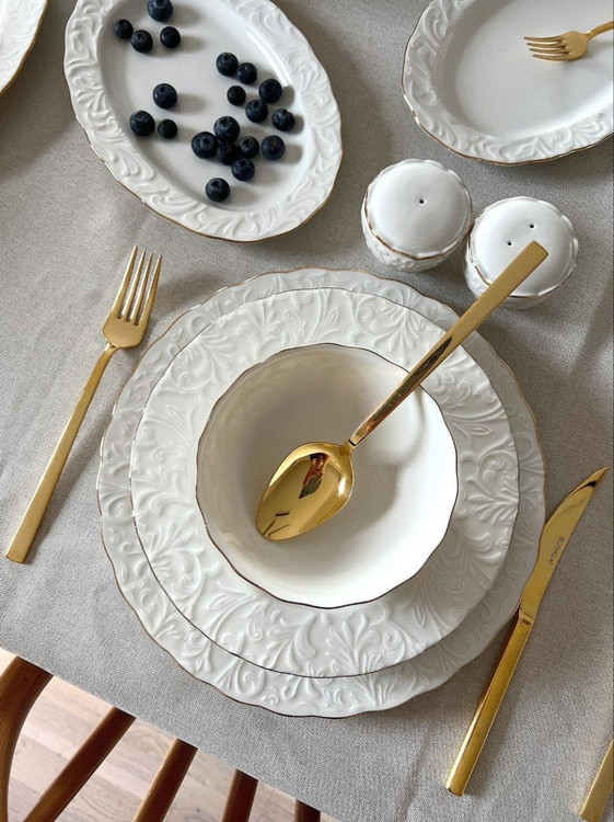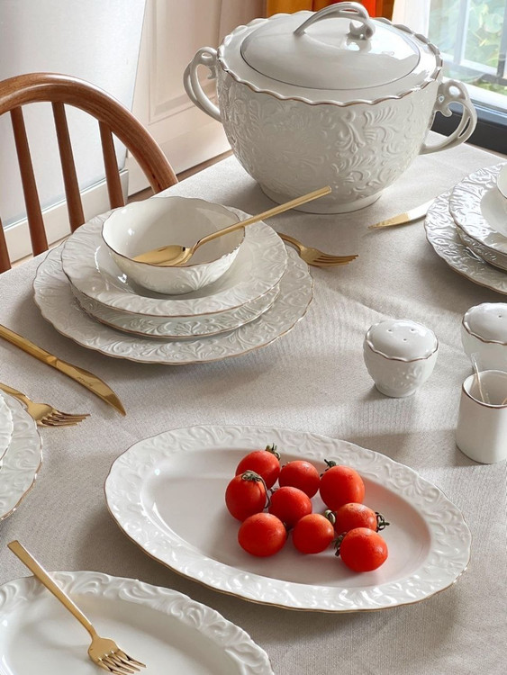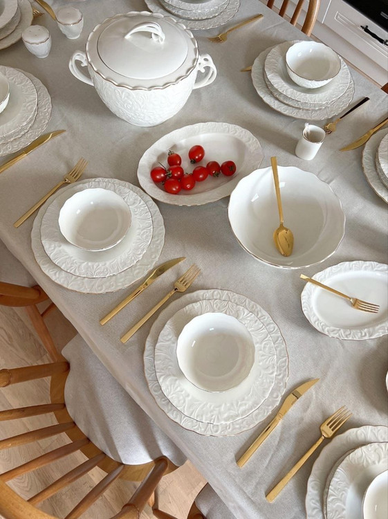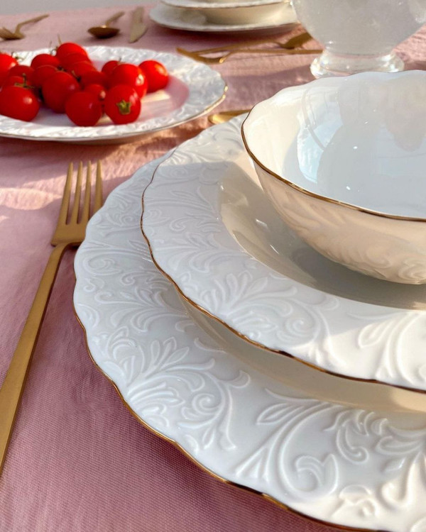 سرویس غذا خوری ۱۲ نفره ۵۵ پارچه گل برجسته ipek ایپک ترکیه دور طلایی