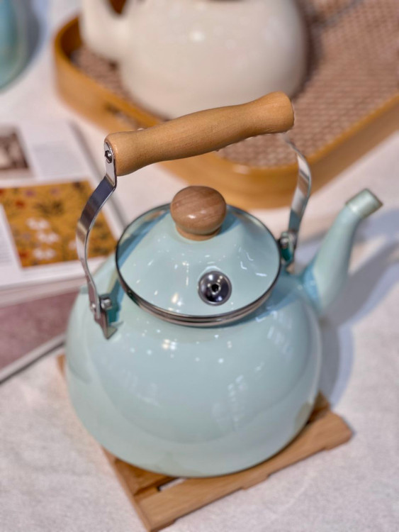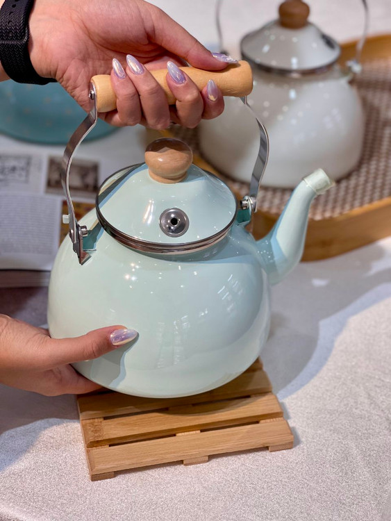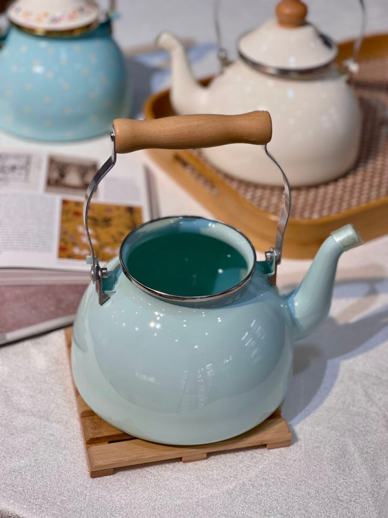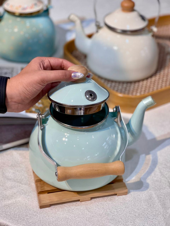 کتری لعابی دسته چوبی طرح انگلیش هوم