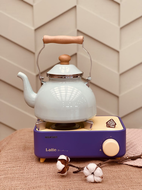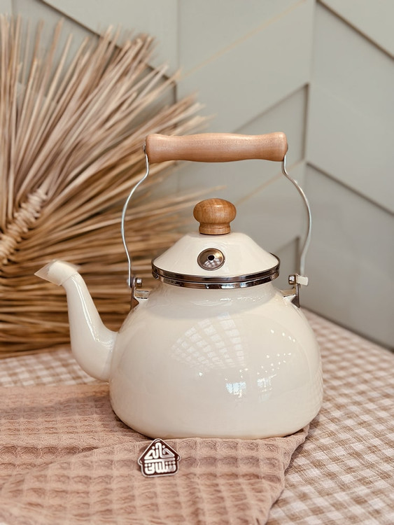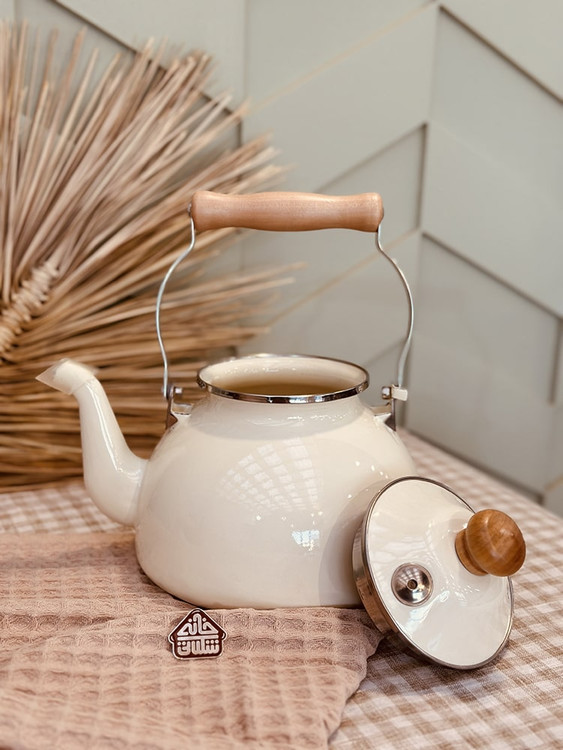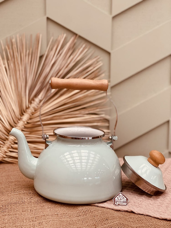 کتری لعابی دسته چوبی طرح انگلیش هوم