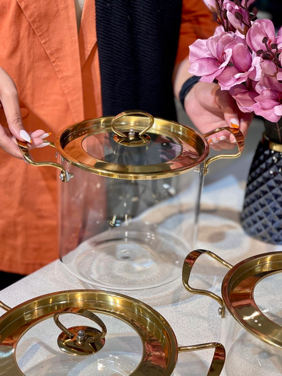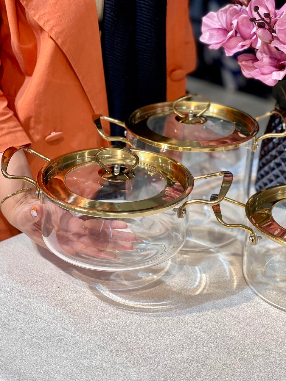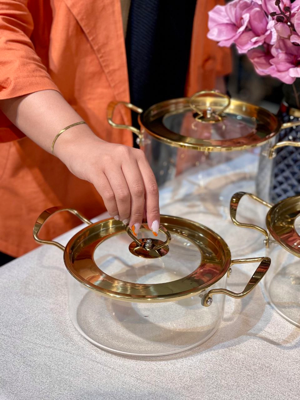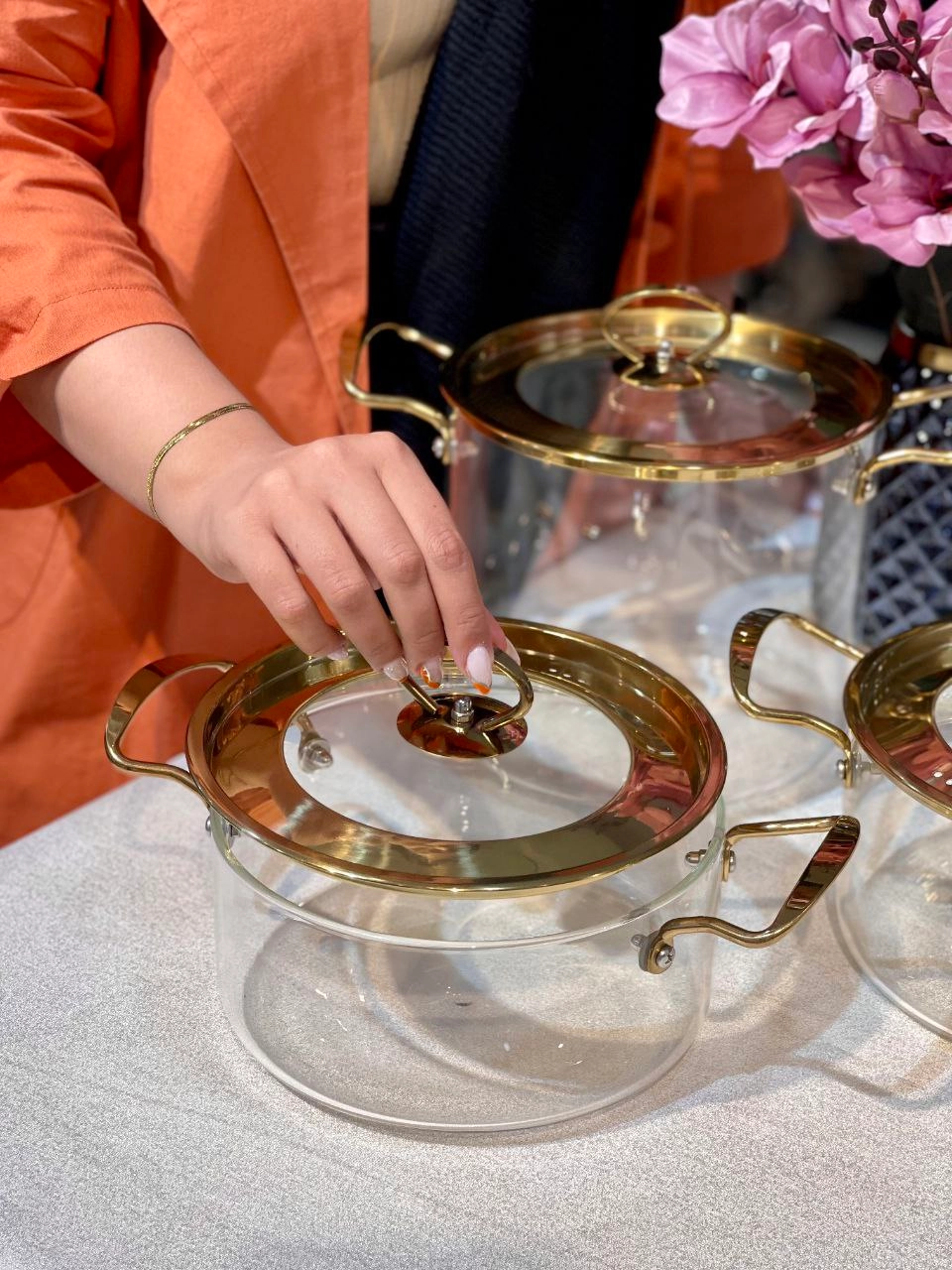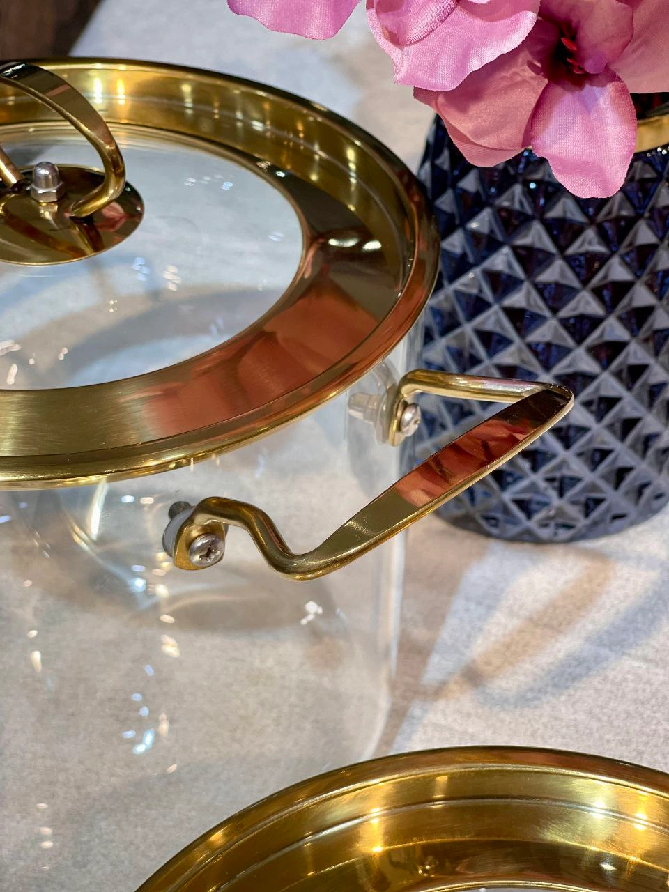 قابلمه پیرکس درب استیل طلایی محصول وارداتی