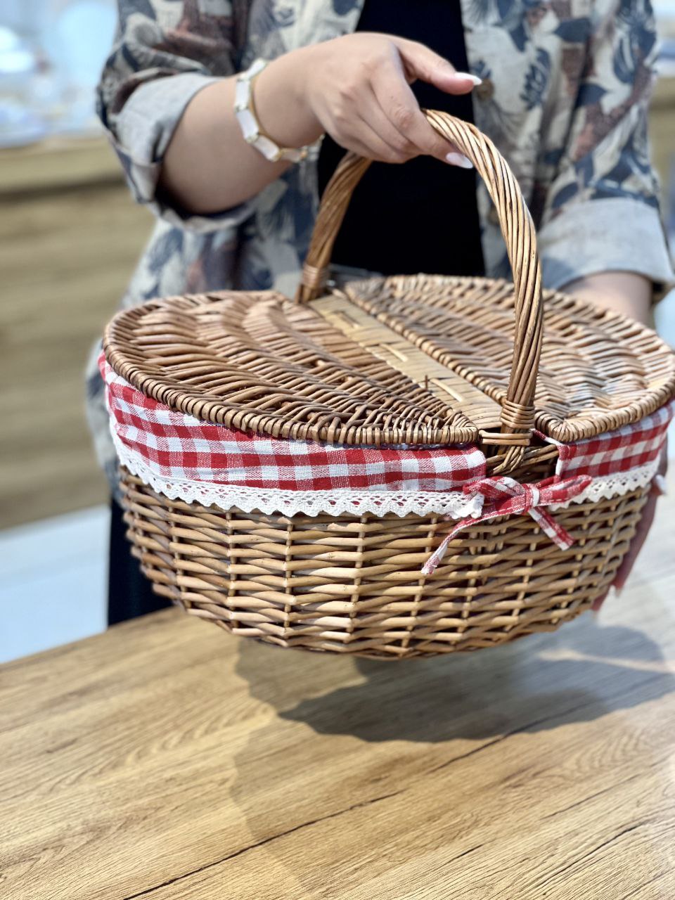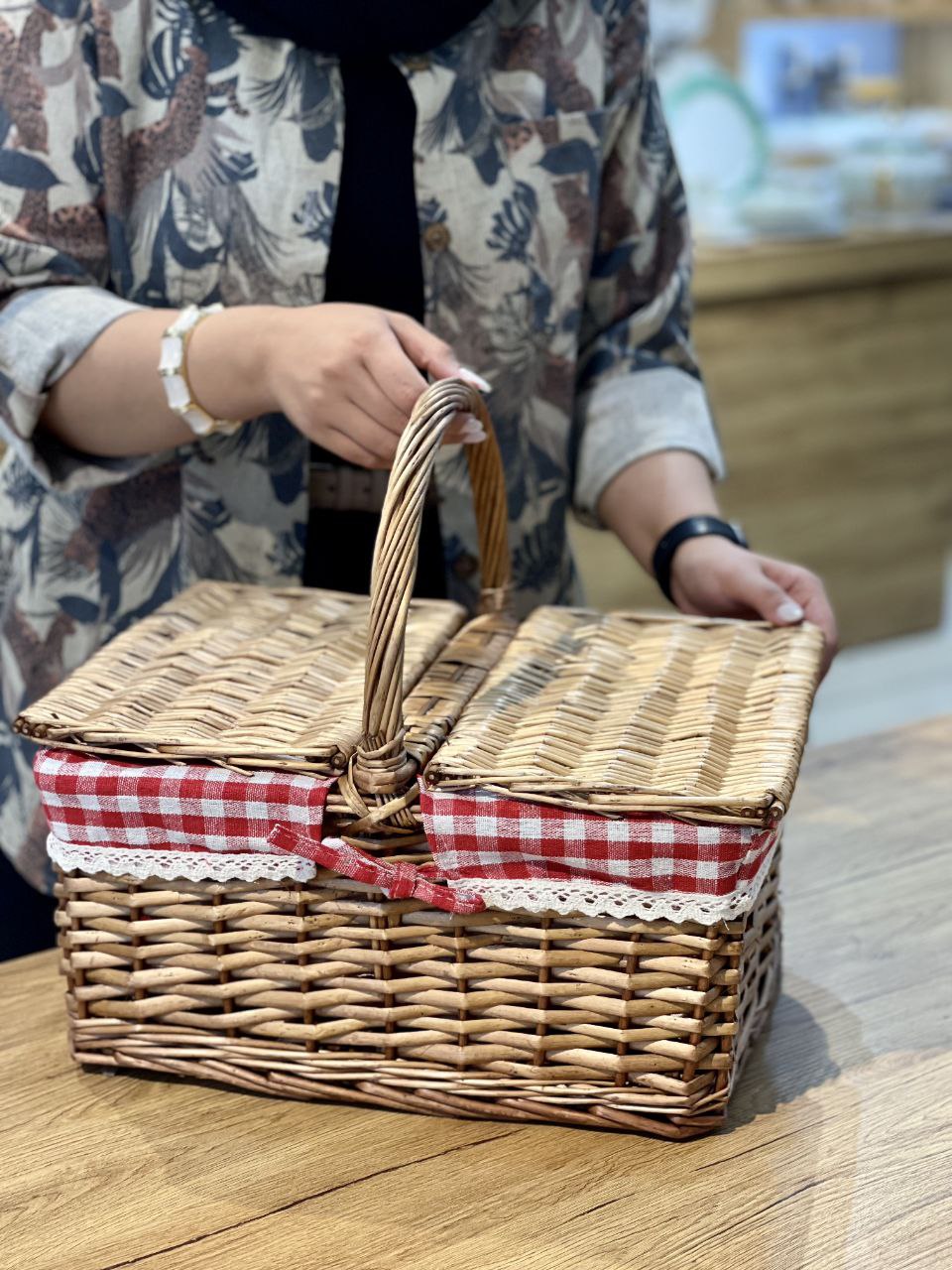 سبد پیک نیک سایز بزرگ حصیری محصول Perotti ترکیه🇹🇷🇹🇷🇹🇷 جنس:پلاستیک فشرده بسیار مقاوم در برابر ضربه داخل دارای پارچه کنفی باز شدن درب از هر دو طرف ارتفاع:45 طول:41 عرض:30