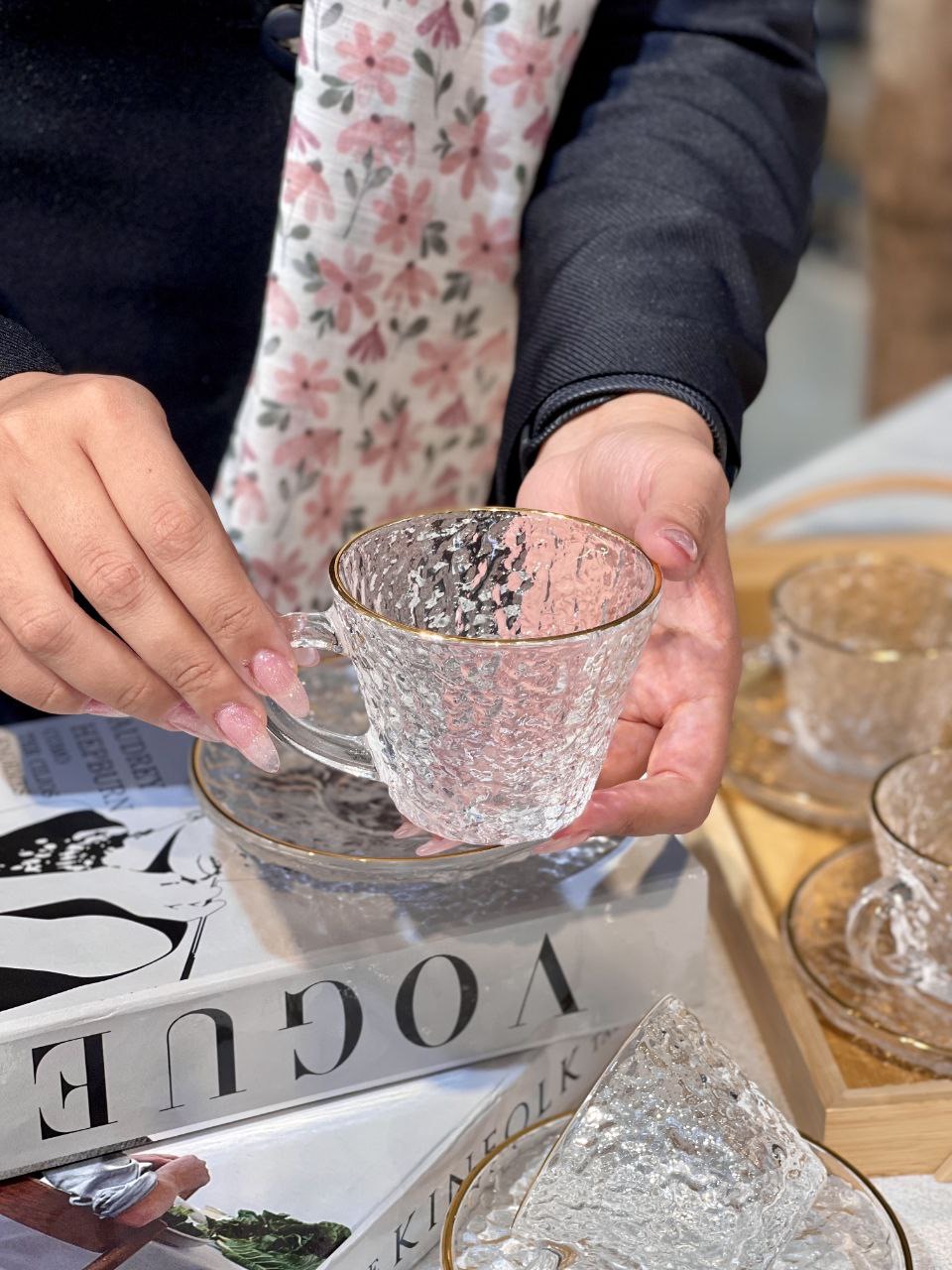 فنجان نعلبکی یخی لب طلا محصول وارداتی