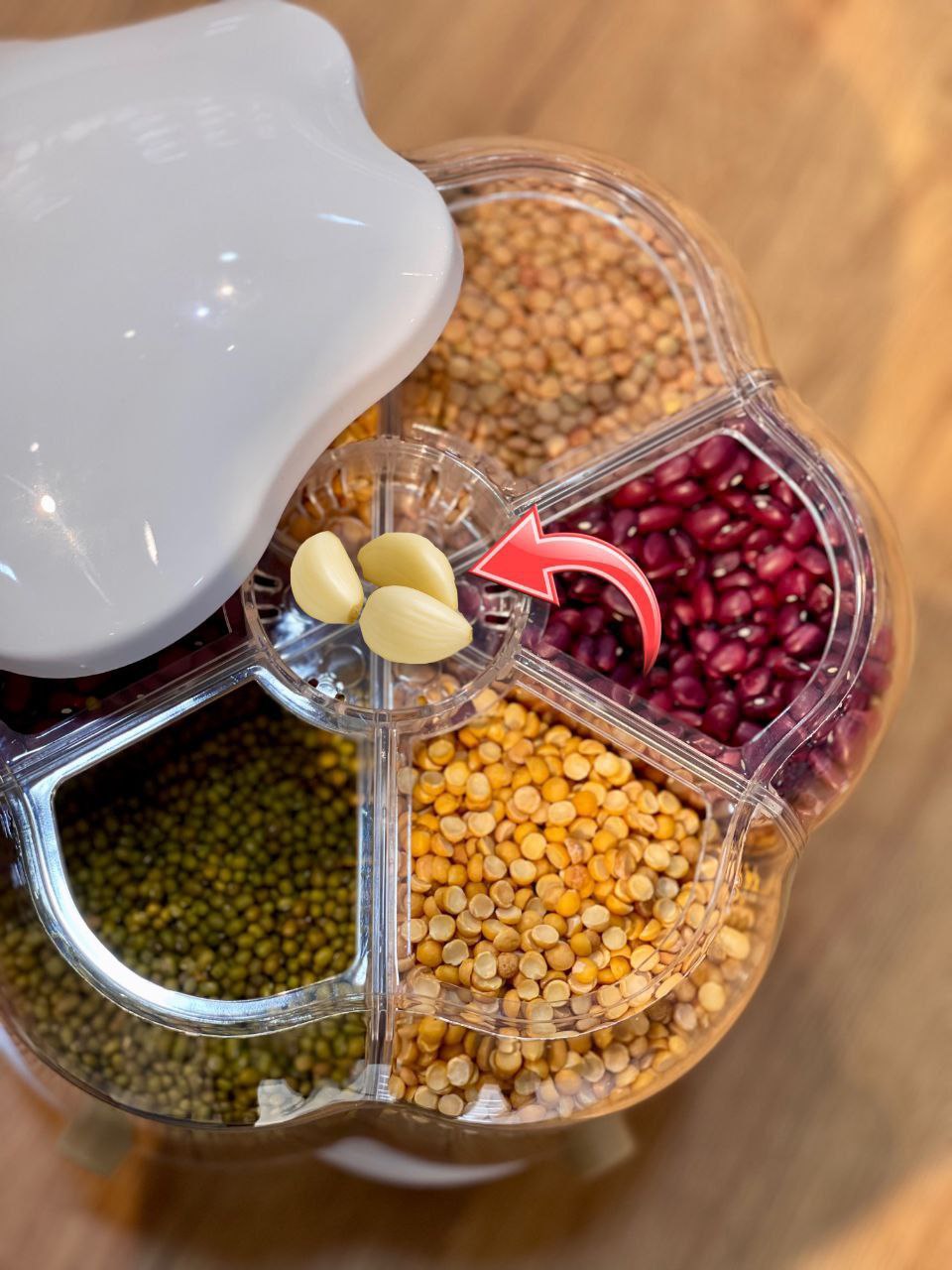 شارژ مجدد با سایز بزرگتر جا حبوباتی گردان شش خانه
