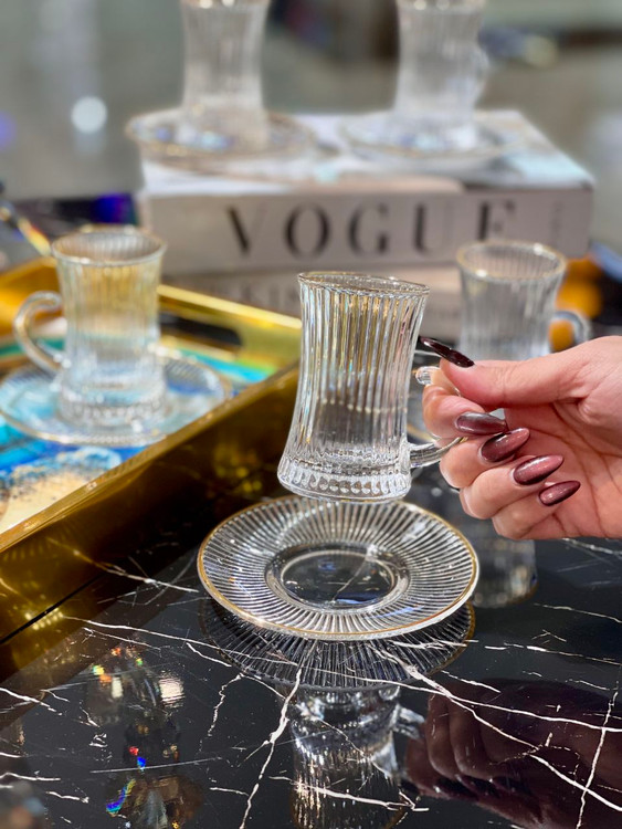 استکان نعلبکی لب طلا Ankara محصول Deli Glass
