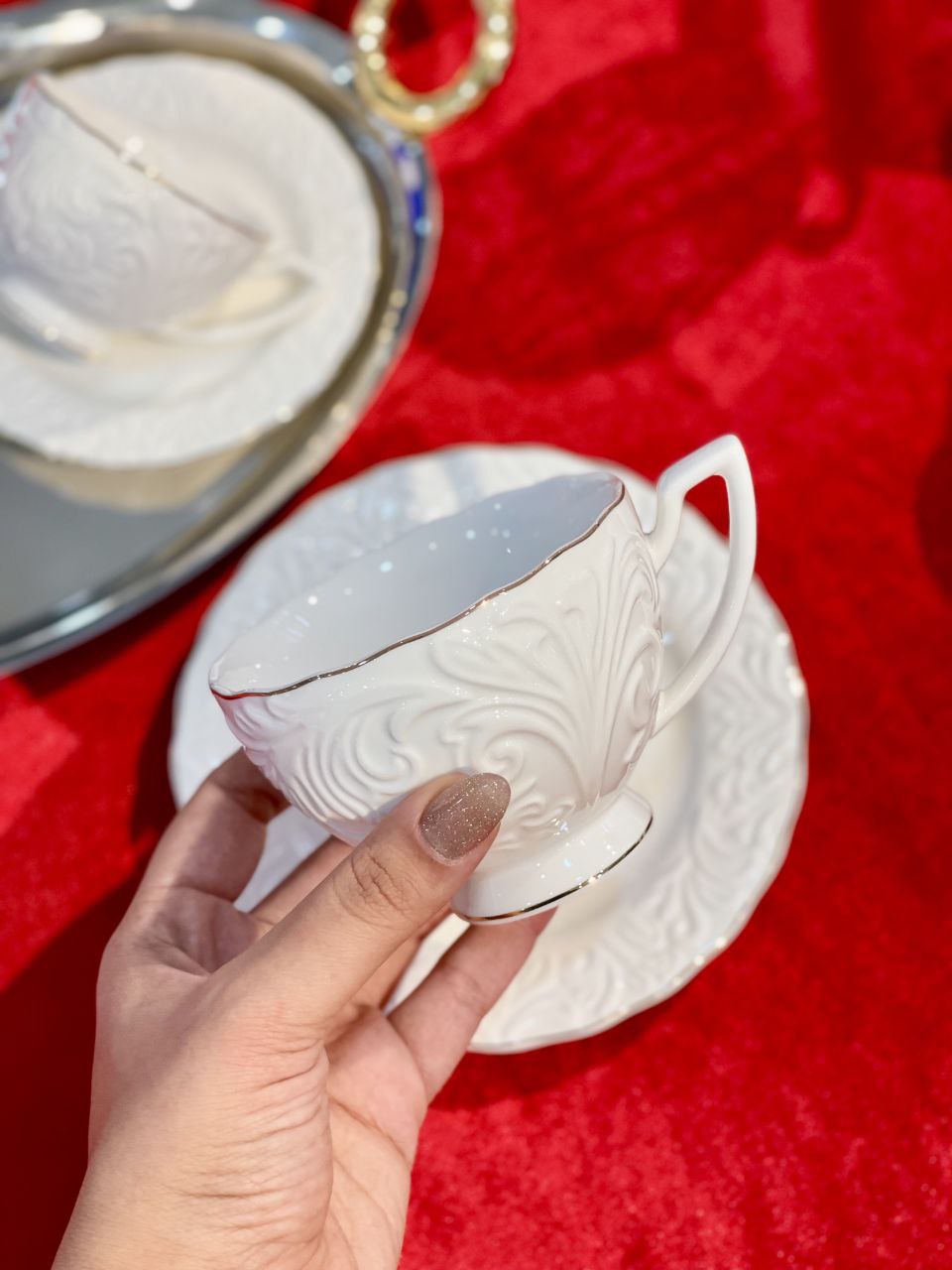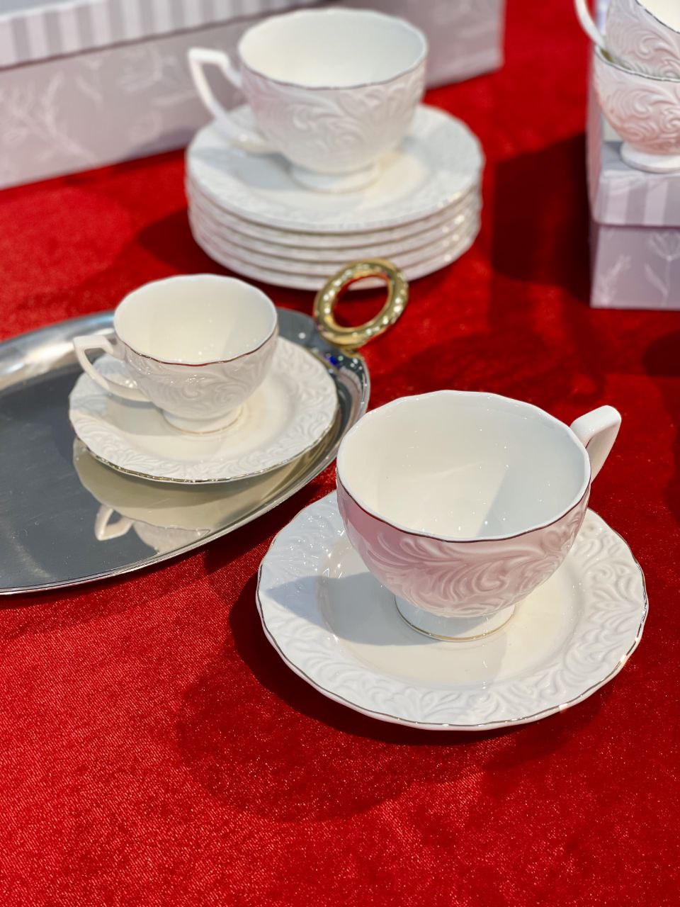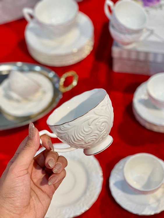 ست چای و قهوه خوری گل برجسته شش نفره