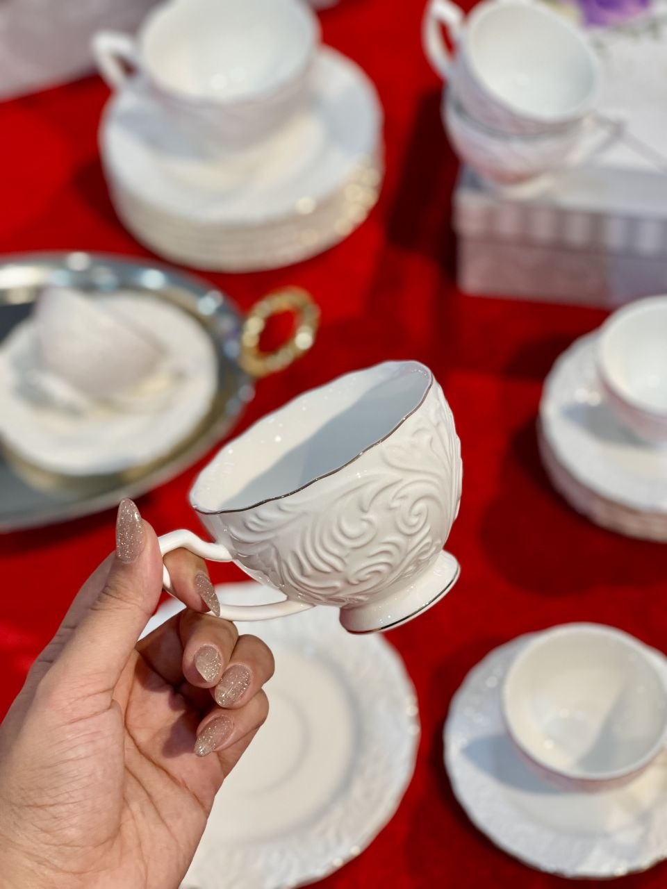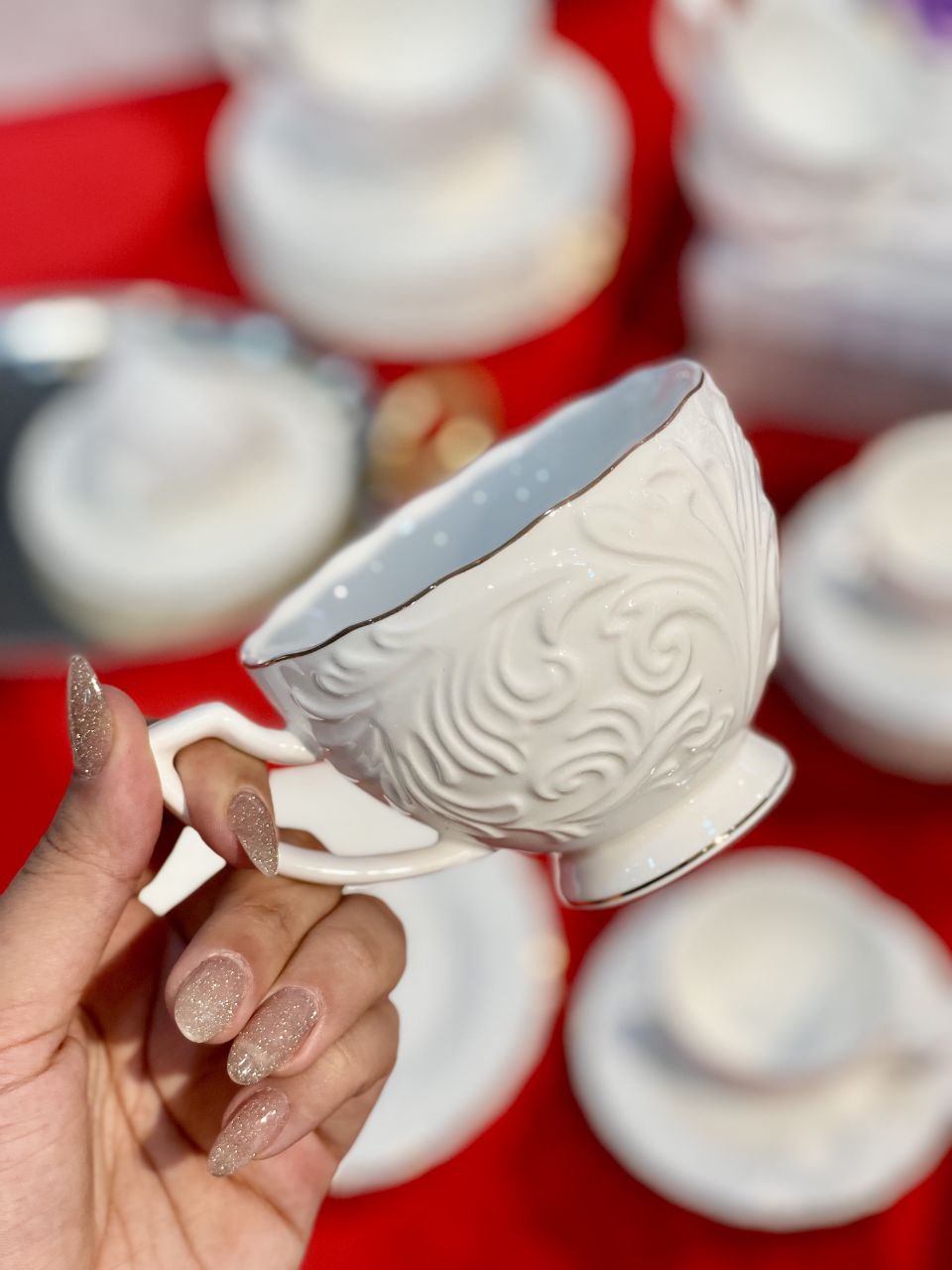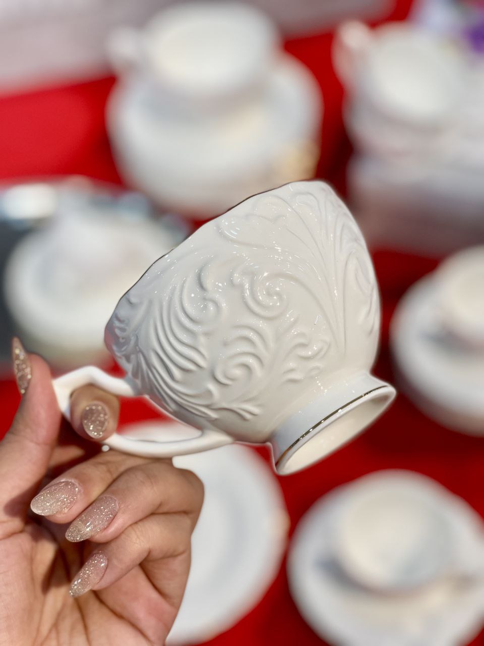 ست چای و قهوه خوری گل برجسته شش نفره