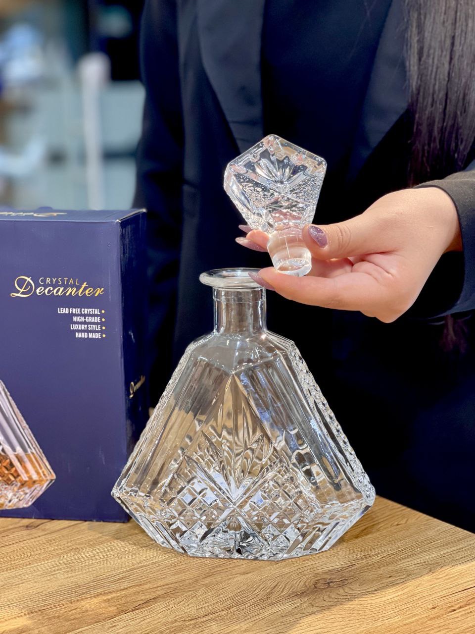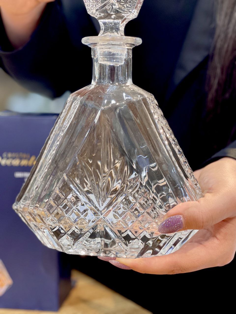 تنگ چند ضلعی تراشدار محصول وارداتی Decanter جنس:کریستالین فوق العاده شفاف و براق حجم:1000 سی سی ارتفاع کلی:27 سانتیمتر طول کفه:17.5 سانتیمتر عرض کفه:7.8 سانتیمتر