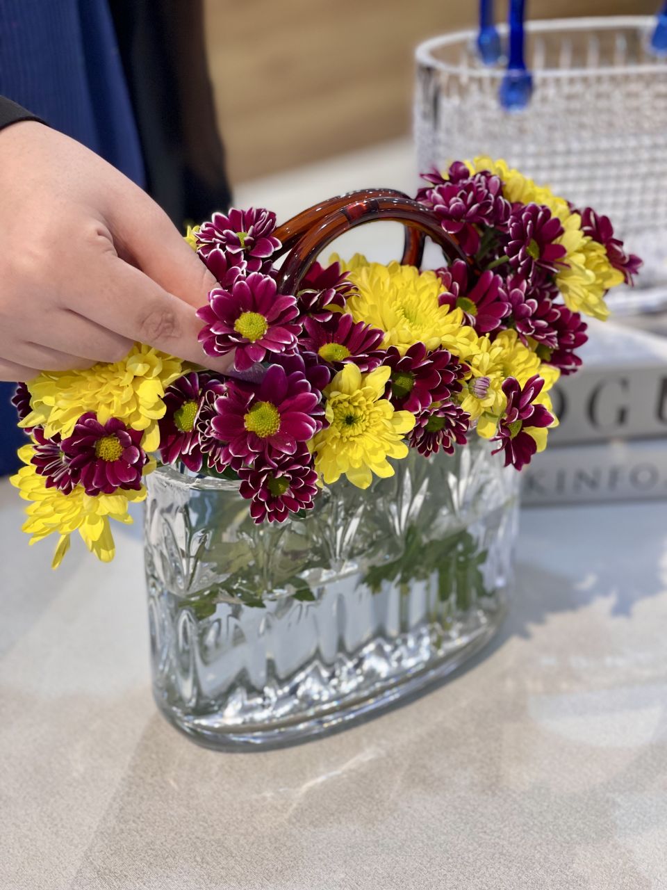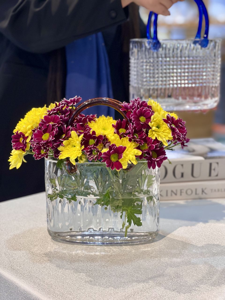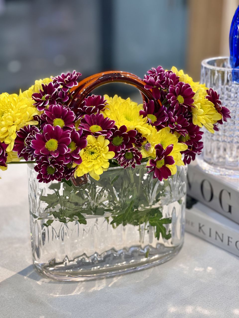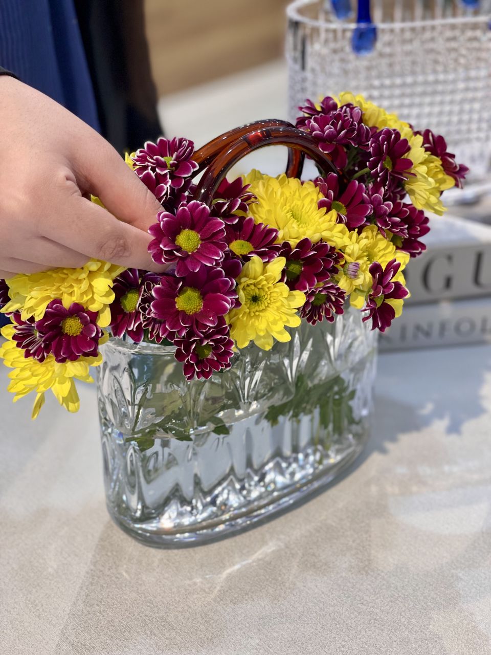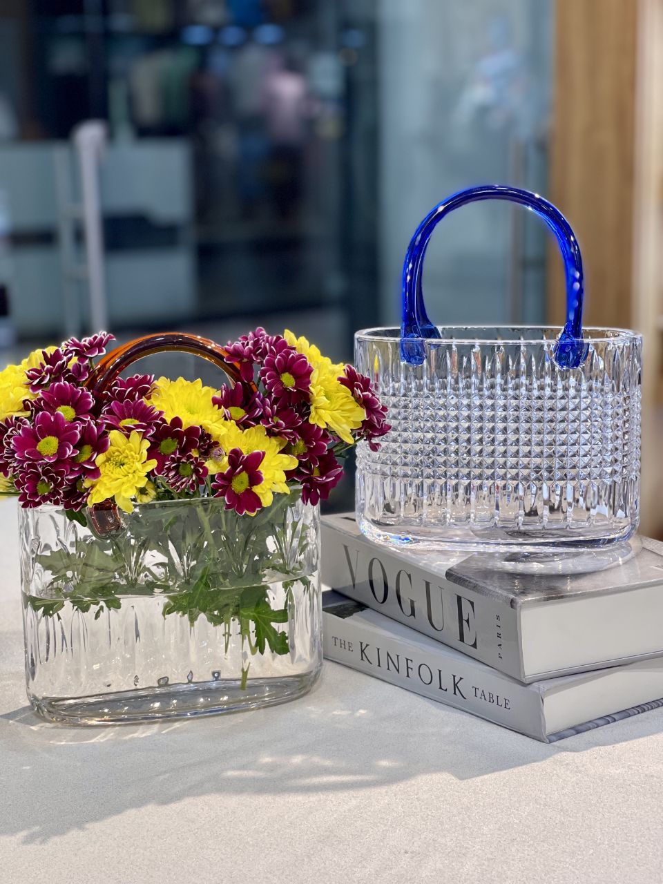 گلدان سبد کریستالی دسته رنگی