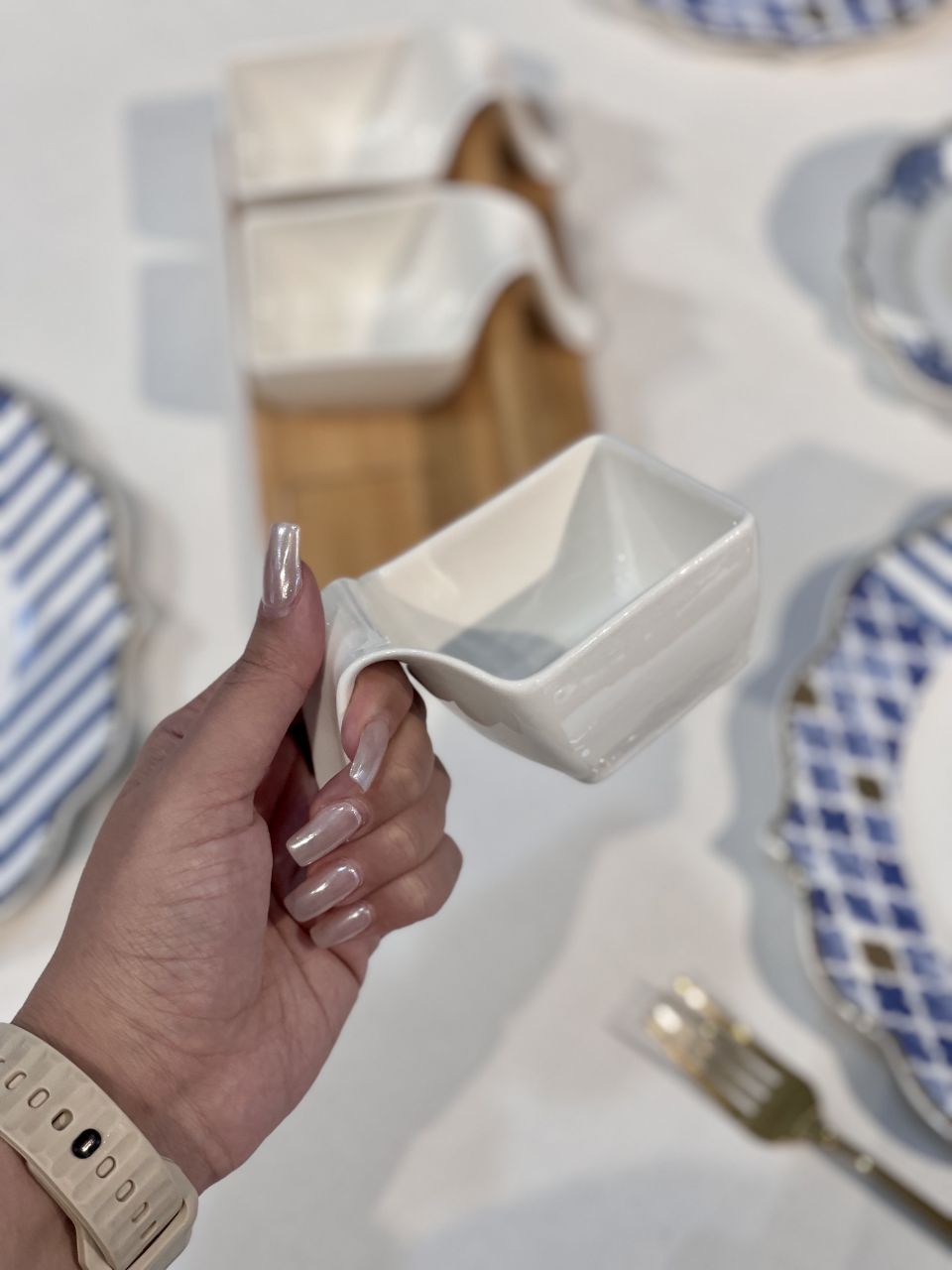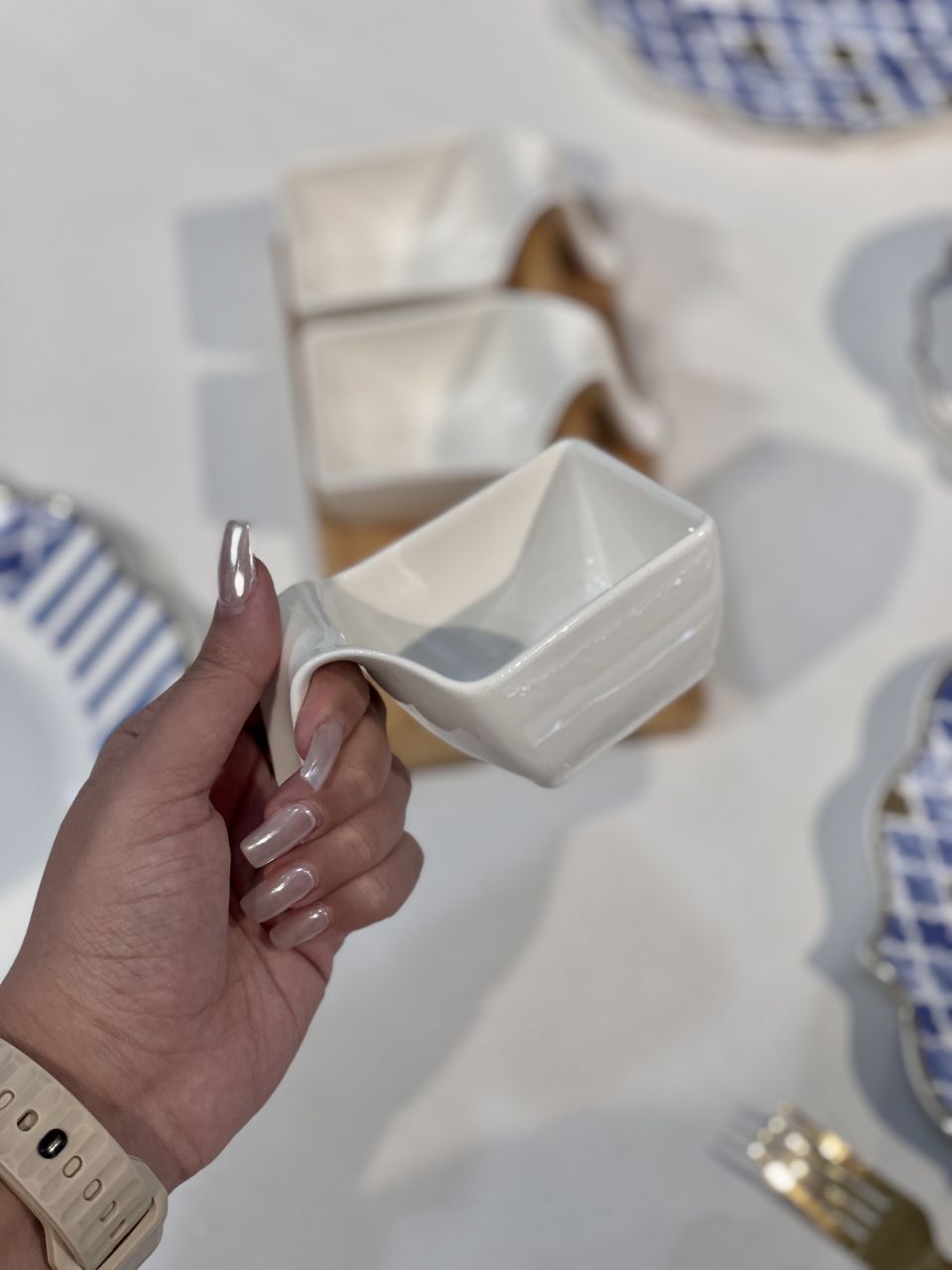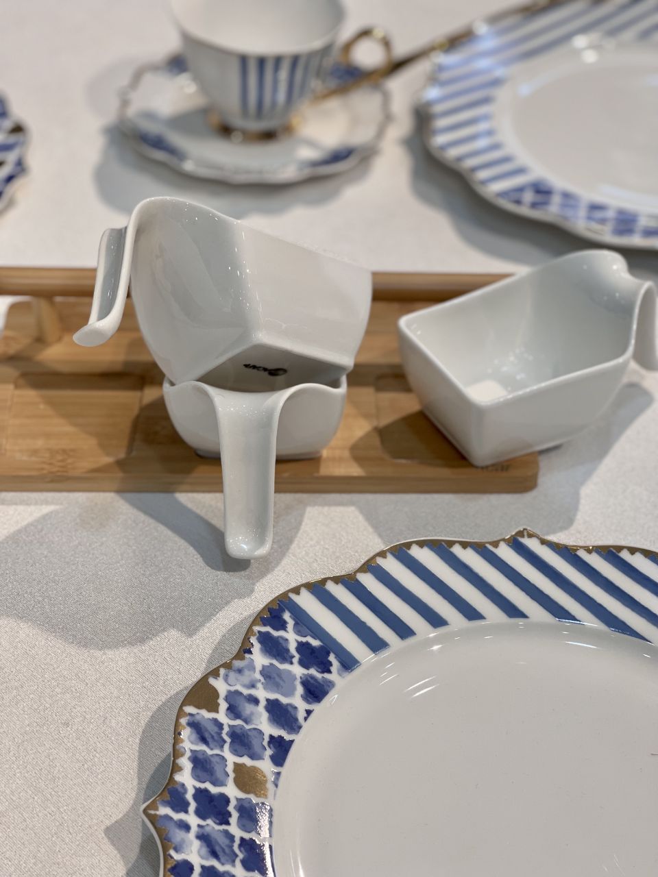 اردور خوری سه خانه La pure محصول acar ترکیه🇹🇷🇹🇷🇹🇷 استند از جنس بامبو پیاله ها از جنس چینی پورسلن قابل استفاده در ماشین ظرفشویی و ماکروفر طول:23.5 سانتیمتر عرض:12.5 سانتیمتر