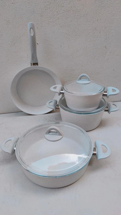 سرویس قابلمه گرانیتی هفت پارچه رنگ سفید