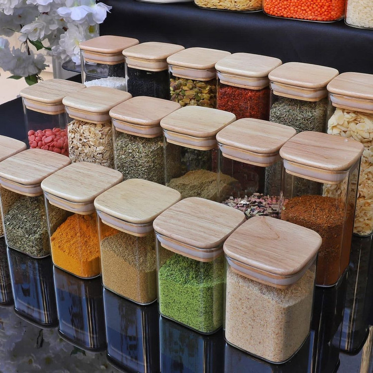 جا ادویه پیرکس سه سایز درب بامبو