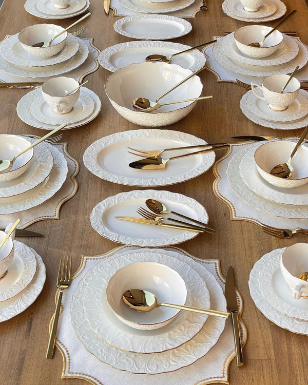 سرویس غذا خوری گل برجسته 6 نفره 26 پارچه ipek ایپک ترکیه