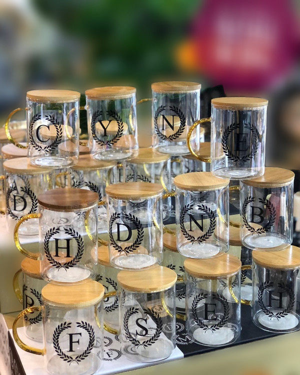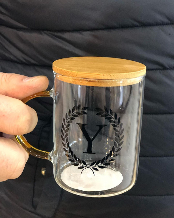 لیوان پیرکس حروف درب بامبو