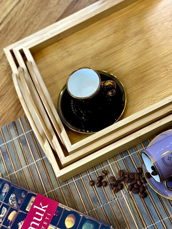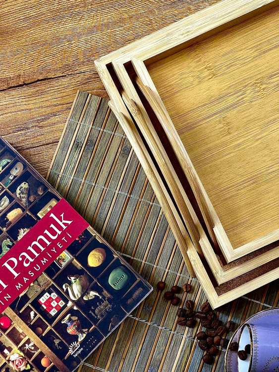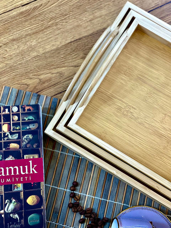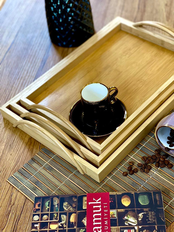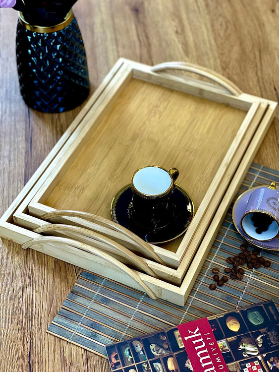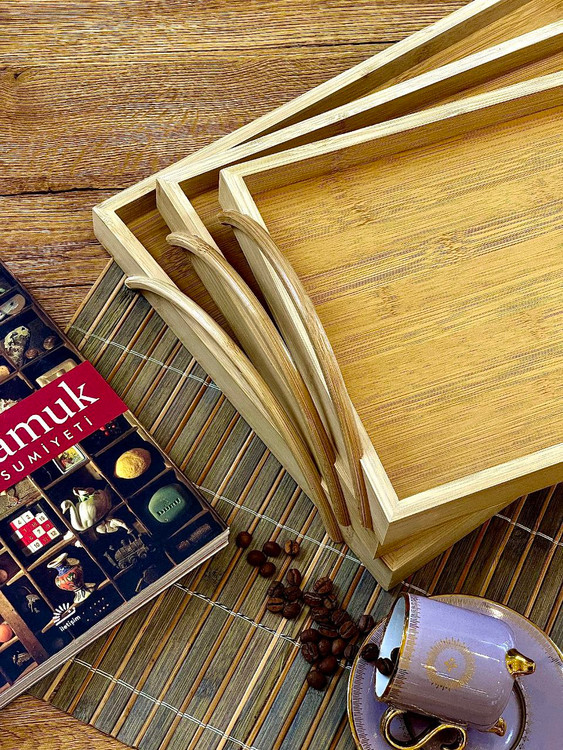 سینی سه سایز دسته دار بامبو برند kardelen ترکیه