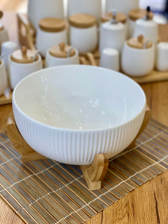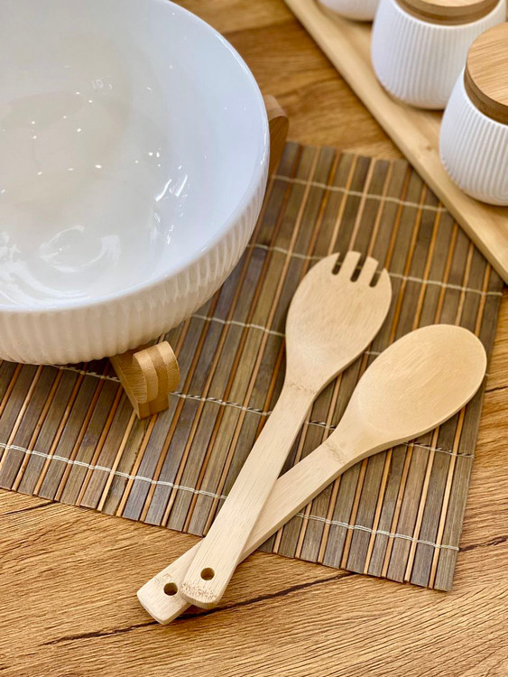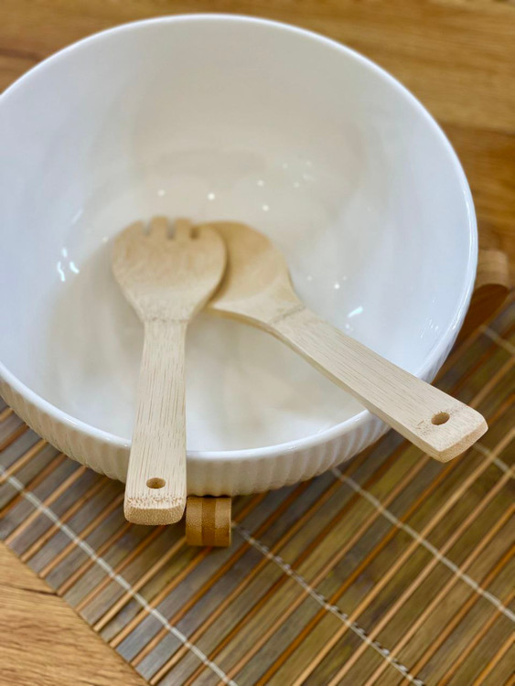 کاسه سالاد همراه با قاشق و چنگال بامبو👇